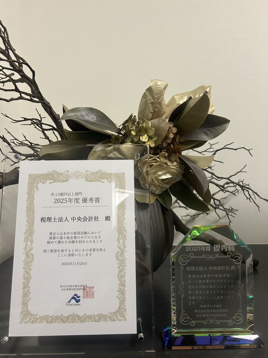 中央会計社が船井総合研究所様主催の会計事務所経営研究会にて『2025年度優秀賞』を受賞しました。