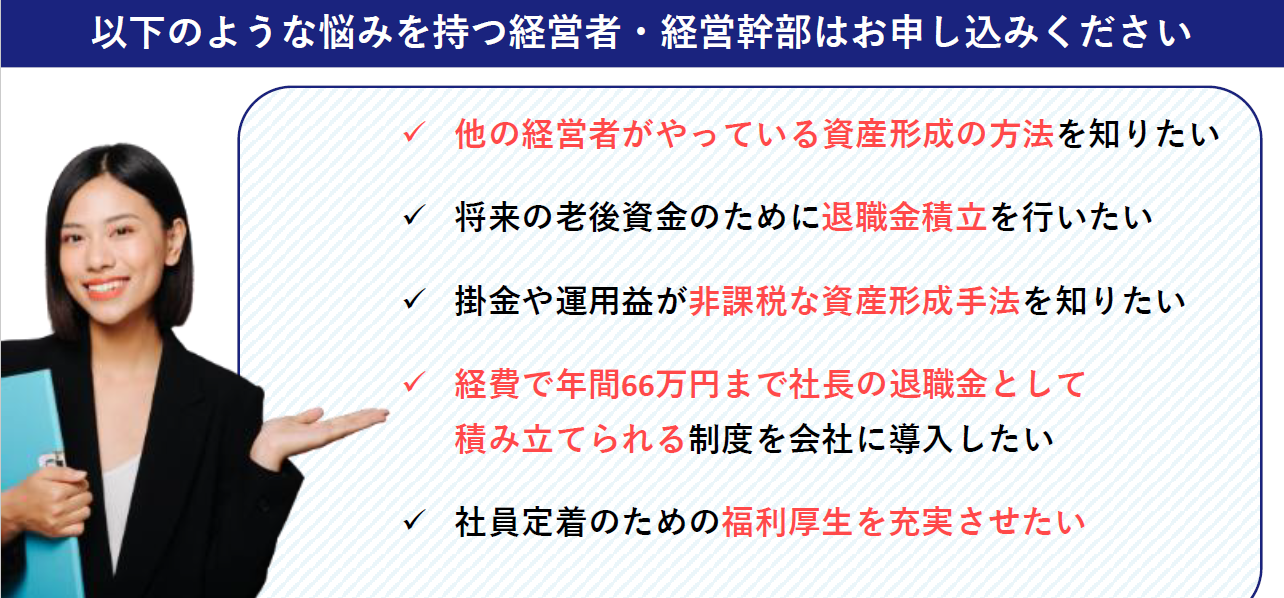 『制度導入を本気で考えたい』とお思いの経営者様は、ぜひお申し込みください。